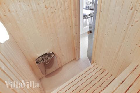 In der imponierenden Badelandschaft des Hauses darf stundenlang geschwommen, gebadet und entspannt werden. Dazu stehen ein 18m2 großer Pool mit Wasserrutsche und Gegenstromanlage, ein herrlicher Whirlpool für bis zu sechs Personen und eine geräumige Sauna zur Verfügung. Egal ob Sie sich also nach Action oder Entspannung sehnen, dieses Badeland hält für jeden Geschmack etwas bereit.