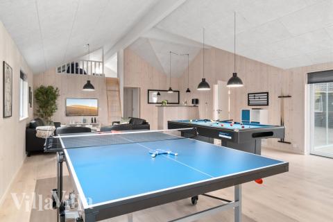 Aber nicht nur beim Kochen kann man gemeinsam viele schöne Stunden miteinander verbringen, auch der Aktivitätsraum des Luxusferienhauses hat viel zu bieten: von Tischfußball, Billard und Tischtennis bis hin zu Darts. An der eingebauten Bar kann man sich eine Pause vom spielerischen Wettkampf gönnen oder dem Spielgeschehen zuschauen. Neben sportlichen Aktivitäten bietet dieser Raum auch eine Sofaecke, in der man es sich wunderbar mit der PlayStation oder bei einem guten Buch gemütlich machen kann.