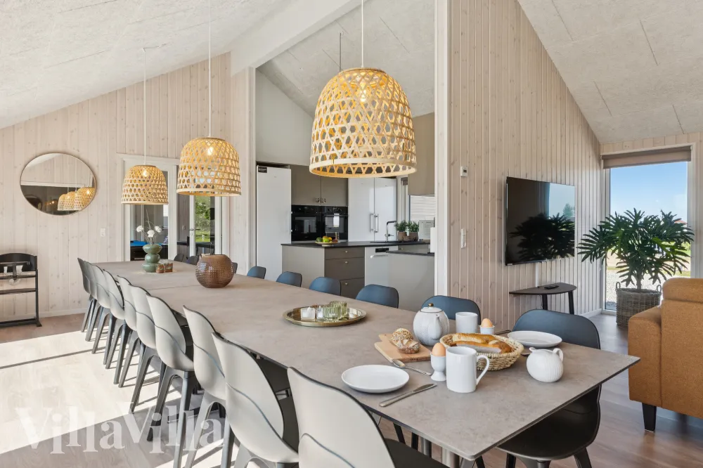Innen wie außen bieten unsere Ferienhäuser mit Pool in Skåstrup Strand eine gehobene Ausstattung. Für bis zu 16 Gäste geeignet ist das Poolhaus Nr. 310, bei dem die Endreinigung bereits inklusive ist. Der Indoor-Pool ist 18 m² groß, noch dazu gibt es eine Sauna und einen Whirlpool. Im Aktivitätsraum können Sie Kicker, Darts, Billard oder Tischtennis spielen, auch eine Spielkonsole ist vorhanden. Das Ferienhaus steht auf einem 1500 m² großem Grundstück, das mit Grill und Gartenmöbeln, Trampolin, Schaukel und Sandkasten ausgerüstet ist. Zudem gibt es eine Lademöglichkeit für Elektroautos.