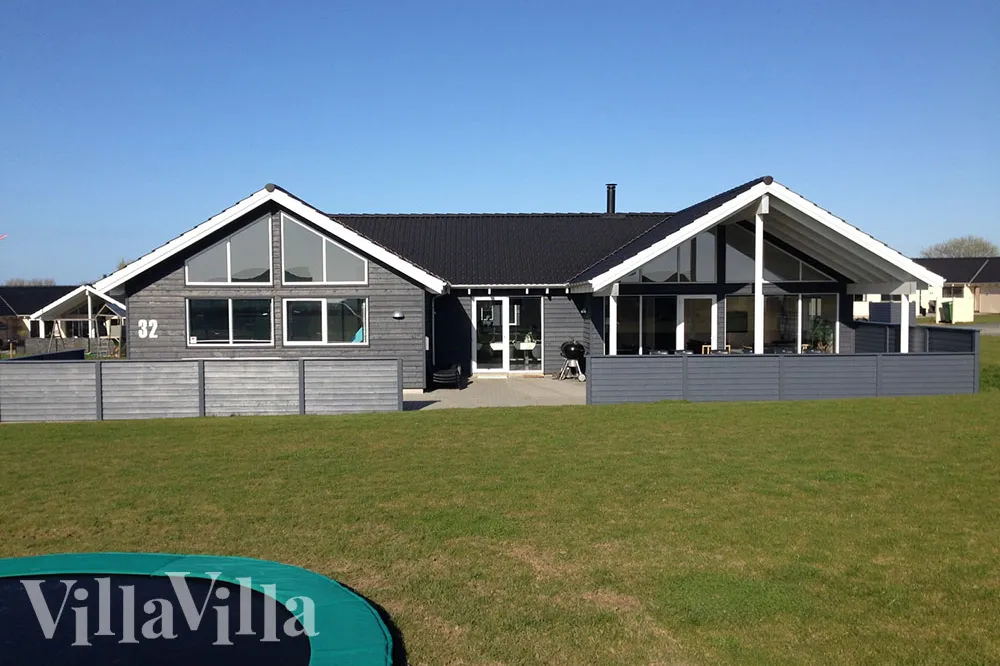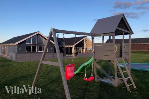 Auch im Außenbereich ist viel Platz für alle Gäste. Auf der großen, teilweise überdachten Terrasse lässt es sich wunderbar in der dänischen Sonne entspannen, während die Kleinen im Sandkasten spielen, sich auf dem Trampolin vergnügen oder schaukeln.