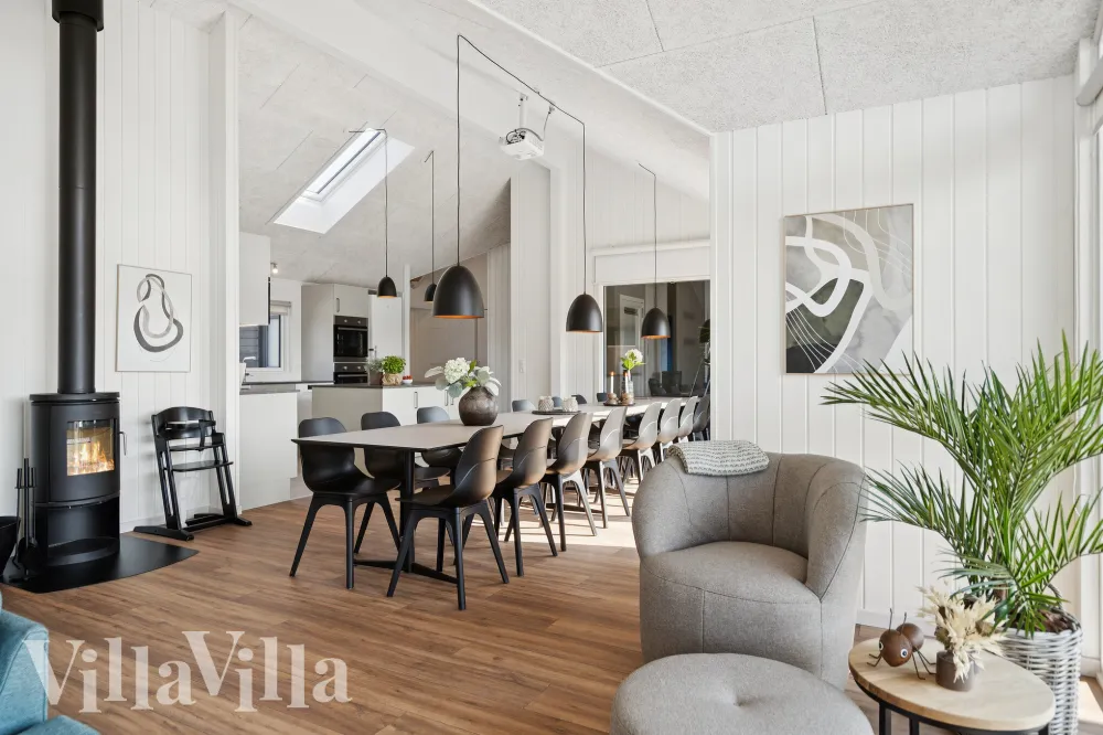 Innen wie außen bieten unsere Ferienhäuser mit Pool in Skåstrup Strand eine gehobene Ausstattung. Für bis zu 16 Gäste geeignet ist das Poolhaus Nr. 310, bei dem die Endreinigung bereits inklusive ist. Der Indoor-Pool ist 18 m² groß, noch dazu gibt es eine Sauna und einen Whirlpool. Im Aktivitätsraum können Sie Kicker, Darts, Billard oder Tischtennis spielen, auch eine Spielkonsole ist vorhanden. Das Ferienhaus steht auf einem 1500 m² großem Grundstück, das mit Grill und Gartenmöbeln, Trampolin, Schaukel und Sandkasten ausgerüstet ist. Zudem gibt es eine Lademöglichkeit für Elektroautos.
