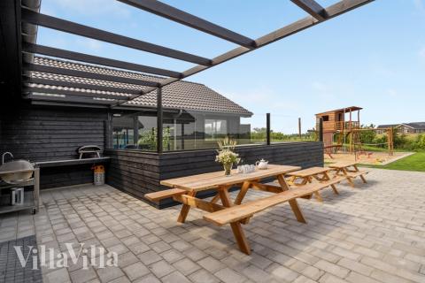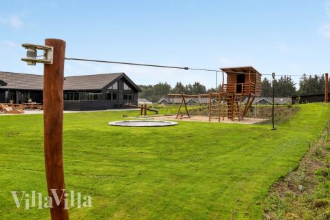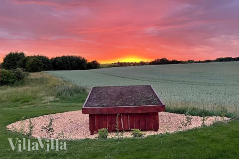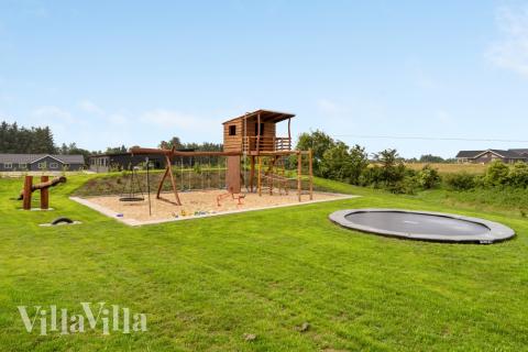 Die Außenanlagen des Hauses sind ebenso reizvoll wie die Innenanlagen. Im Garten gibt es eine riesige Sandkiste, einen Bagger, ein Klettergerüst, eine große Schaukel, eine Wippe und natürlich ein Trampolin. Außerdem finden Sie hier ein Pannafeld und Basketballkörbe für temporeiche Spiele mit Basketball, Fußball oder Hockeyschlägern sowie einen Petanque-Platz, wenn man es etwas ruhiger angehen möchte. Von der Küche aus gelangt man auf die nach Osten ausgerichtete Morgenterrasse, die mit Caféstühlen ausgestattet ist – ideal, um von dort den Sonnenaufgang zu genießen. Der Garten bietet schöne Naturerlebnisse und zahlreiche Obststräucher mit leckeren Beeren, die alle Gäste des Hauses ernten können. Um den Urlaub umweltfreundlicher zu gestalten, wurde in Solarzellen investiert und der Stromverbrauch des Hauses wird mit umweltfreundlicher Windenergie gedeckt.