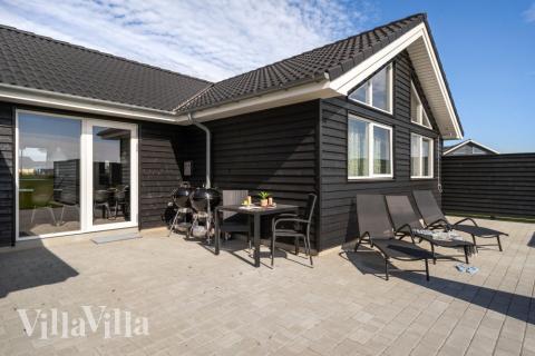 Die Außenanlagen des Hauses sind ebenso reizvoll wie die Innenanlagen. Hier befindet sich die große abgeschirmte Terrasse des Hauses mit Außendusche und Außenwhirlpool, auf der man das ganze Jahr über angenehme Abende verbringen kann. Die Terrasse ist zudem mit einem Grill ausgestattet. Da sie teilweise überdacht ist, kann man hier auch bei nicht ganz so gutem Sommerwetter gemütlich sitzen. Im Garten gibt es ein Trampolin, eine Schaukel und ein Klettergerüst.