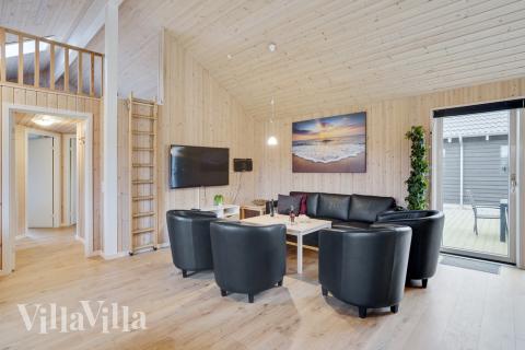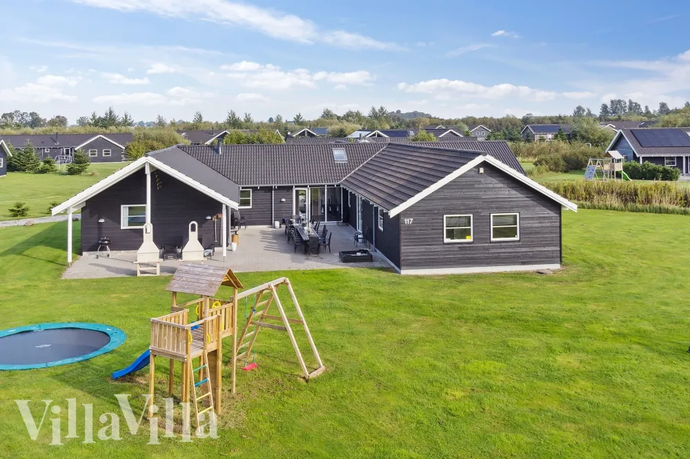 Die Terrasse ist teilweise überdacht und eignet sich perfekt, um die dänische Sonne und die langen Sommerabende in vollen Zügen zu genießen. Für die ganz jungen Gäste gibt es einen Sandkasten, Schaukeln und einen herrlichen, großen Rasen zum Austoben. Egal ob Groß oder Klein, in diesem Luxusferienhaus wird niemandem langweilig.