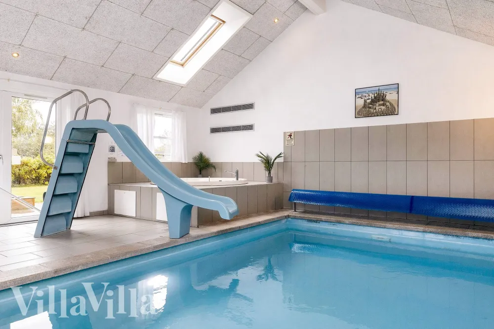 Dieses exklusive Poolhaus in der Nähe von Marielyst ist der perfekte Ort für zwei bis drei Familien, die gerne Ferien voller spannender Aktivitäten und Spaß miteinander erleben möchten. Die Badelandschaft des Hauses umfasst nicht nur einen 18 m2 großen Swimmingpool mit Wasserrutsche, sondern auch einen Whirlpool und eine Sauna. Hier können große wie kleine Gäste zusammen spielen, schwimmen und entspannen.