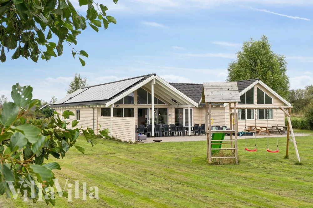 Draußen auf dem weitläufigen Grundstück gibt es mit Petanque, Fußballtore, Sandkasten und Schaukeln reichlich Optionen für Aktivität. Die Gäste können es sich aber auch auf der großen Terrasse beim Sonnenbad gemütlich machen- gerade an den herrlichen dänischen Sommerabenden ein echtes Highlight. Sollte sich der Himmel einmal zuziehen, ist auch das kein Problem, denn die Terrasse ist teilweise überdacht. So steht einem gemütlichen Grillabend, ungeachtet der Jahreszeit und des Wetters, nichts im Wege.