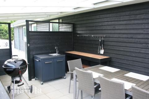 Auf der teilweise überdachten Terrasse kann man das Abendessen auf dem Grill zubereiten, die Sonne auf den Sonnenliegen genießen oder eine Tasse Kaffee auf dem überdachten Teil der Terrasse trinken. Der Garten ist von hoher Bepflanzung umsäumt und bietet der ganzen Familie Privatsphäre. Auf der Westseite des Hauses finden Sie einen schönen, schattigen Außenbereich mit einer Außenküche und einem langen Tisch, an dem Sie alle zusammenkommen können. Die Kinder können auf dem Trampolin springen, im Garten schaukeln, auf dem Klettergerüst klettern oder auf der großen Rasenfläche Fußball spielen.
