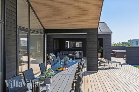 Dieses luxuriöse Ferienhaus von Skanlux ist voller Aktivitäten für Wasserratten ebenso wie für entspannte Genießer. Sie können dort zu jeder Jahreszeit im beheizten Pool mit Wasserrutsche baden. Verlängern Sie die Outdoor-Saison auch an kalten Wintertagen auf der gemütlichen Holzterrasse, im Wellnessbereich mit Outdoor-Spa, Außendusche und Außensauna. Hier können Sie richtig entspannen und das Wohlbefinden unter dem Sternenhimmel genießen. An lauen Sommerabenden können Sie sich in den Loungemöbeln zum Grillen niederlassen, während die Kinder im Garten auf dem Trampolin oder auf der Schaukel spielen können.