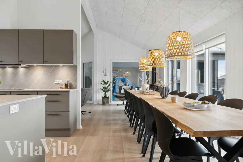 Dieses stilvolle Ferienhaus bietet den perfekten Rahmen für unvergessliche Momente und viel Platz für alle Gäste. Es liegt im idyllischen Ålbæk, nur 500 Meter vom Strand entfernt und in der Nähe von Skagen und Frederikshavn. Das Haus kombiniert auf ideale Weise Entspannungsmöglichkeiten und Aktivitäten sowohl im Innen- als auch im Außenbereich. Im Zentrum des VillaVilla-Hauses finden Sie die geräumige Wohnküche. Mit der bequemen Sofaecke, einer großen offenen Küche und einem Esstisch, der allen 20 Gästen Platz bietet, ist sie der... Weiterlesen