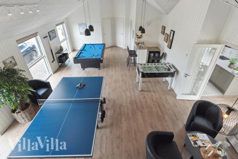 Im Aktivitätsraum, der direkt vom Wohn- und Essbereich aus zugänglich ist, gibt es Unterhaltung für alle Altersgruppen, Hier kann man Billard, Tischtennis, Tischfußball und Darts, order PlayStation 5 spielen oder sich an der Bar entspannen. Vom Aktivitätsraum aus gelangt man auch in zwei der drei Schlafbereiche.