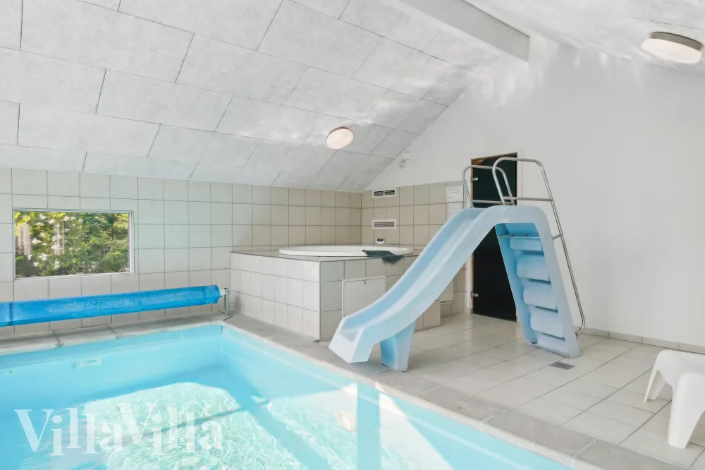 Das Ferienhaus verfügt über einen eigenen 15 m2 Pool mit Wasserrutsche und Gegenstromanlage, in dem man stundenlang baden und planschen kann. Der Poolbereich ist zudem mit einem schicken Whirlpool und Sauna ausgestattet, in denen sich die Gäste entspannen können. Gerade in den kühleren Monaten ist diese Ausstattung ein wirklicher Luxus, der für das nötige Wellness-Programm sorgt.