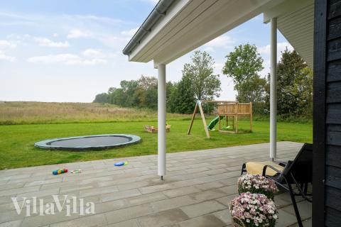 Im Außenbereich befindet sich ein Spülbecken mit Tisch. Dieser Bereich kann für grobe Küchenarbeiten oder von Anglern, die den Fischfang des Tages säubern, genutzt werden. Die teilweise überdachte Terrasse ist mit Gartenmöbeln und Grill ausgestattet. Für die kleinsten Gäste stehen Schaukel, Sandkiste und Trampolin im Garten bereit.