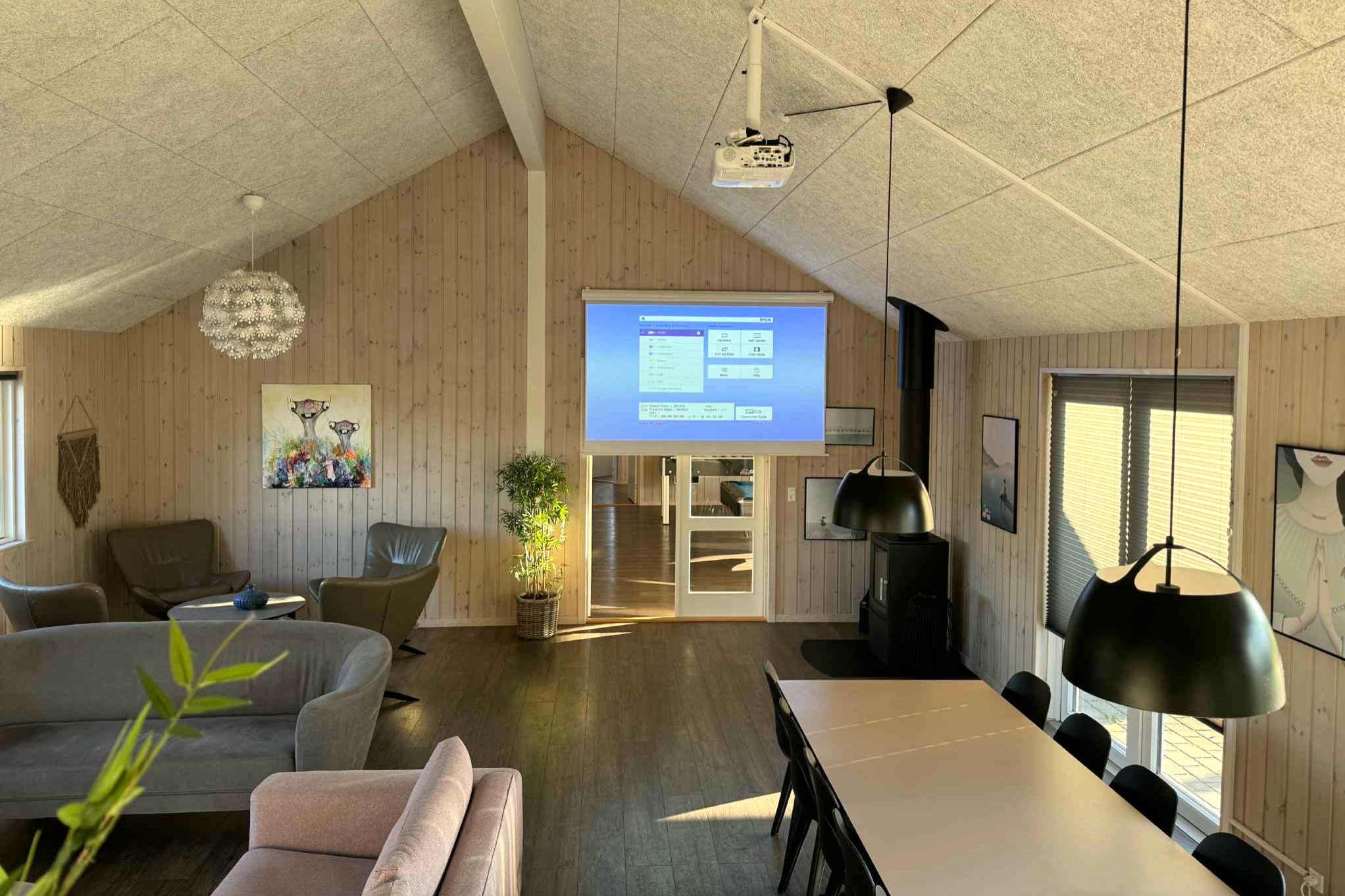 Eine weitläufige Terrasse, die zum Teil überdacht ist, steht für gemütliche Stunden unter Dänemarks Sonne zur Verfügung. Bequeme Möbel und ein Grill sind vorhanden. Im Außenbereich gib es einen großen Spielbereich und ein Mehrzweckspielfeld, die mit den Gästen des Nachbarhauses geteilt werden. Hier gibt es für Spielefreunde jeden Alters ein tolles Angebot: von Schaukeln über eine Spielburg mit Rutschen und Klettergerüst bis hin zum großen Mehrzweckspielfeld. Auf dem mit Kunstrasen belegten Mehrzweckspielfeld kann man Fußball, Basketball, Fußballtennis, Volleyball und Badminton spielen.