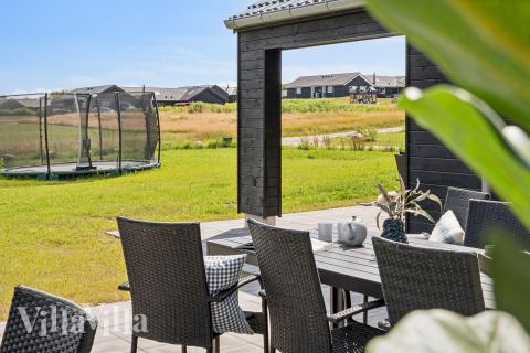Für die Kleinen gibt es ein Trampolin, auf dem sie sich stundenlang vergnügen können. Während die Kinder springen und spielen, können es sich die Erwachsenen auf den Gartenmöbeln gemütlich machen und auf der Terrasse grillen.