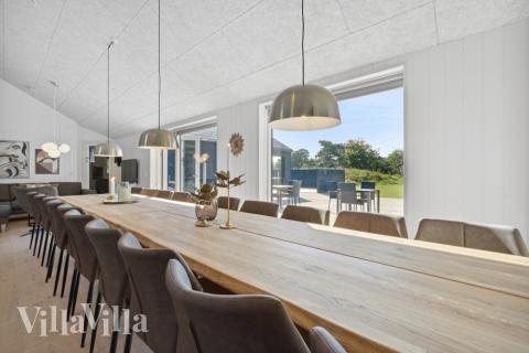 In der Mitte des VillaVilla-Ferienhauses befindet sich der Wohn-Essbereich. Am langen Tisch können sich alle versammeln, um die selbst zubereiteten Mahlzeiten zu genießen, die in der Küche zubereitet werden, in der viele Haushaltsgeräte doppelt vorhanden sind. Dank der gut ausgerüsteten XL-Küche geht das Kochen schnell und unkompliziert vonstatten. Das Wohnzimmer ist mit einem Kamin ausgestattet: Was könnte wohl gemütlicher sein?