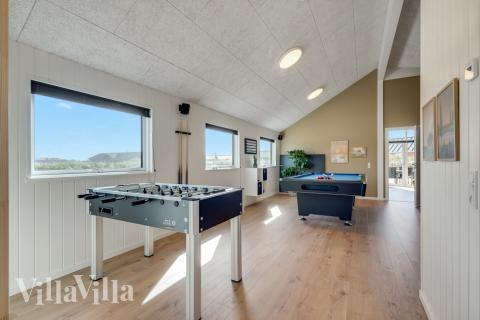 Aber der Spaß hört hier noch lange nicht auf, sondern geht im Aktivitätsraum des Ferienhauses weiter. Hier übt die Kombination aus Billardtisch und Tischtennisplatte eine nahezu magische Anziehungskraft auf alle Spielbegeisterten aus. Oder wie wäre es mit einer Partie Darts oder Tischfußball? Wer lieber zuschaut, kann dies bei einer kühlen Erfrischung an der Bar des Raums tun.