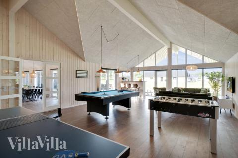 Der lichtdurchflutete Aktivitätsraum mit Billard, Tischtennis, Darts und Tischfußball befindet sich an einem Ende des Ferienhauses. Außerdem erwarten Sie hier eine Eckbar und eine Sofaecke mit TV und PlayStation 4.