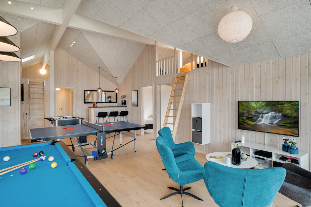 Das Luxusferienhaus hat einen separaten Aktivitätsraum mit einem tollen Angebot für Spiel und Spaß. Billard, Tischtennis, Tischfußball und Darts: Da kommt im Urlaub garantiert keine Langeweile auf! Sie können sich im Aktivitätsraum auch an der Bar mit Kühlschrank entspannen oder PlayStation 4 spielen.