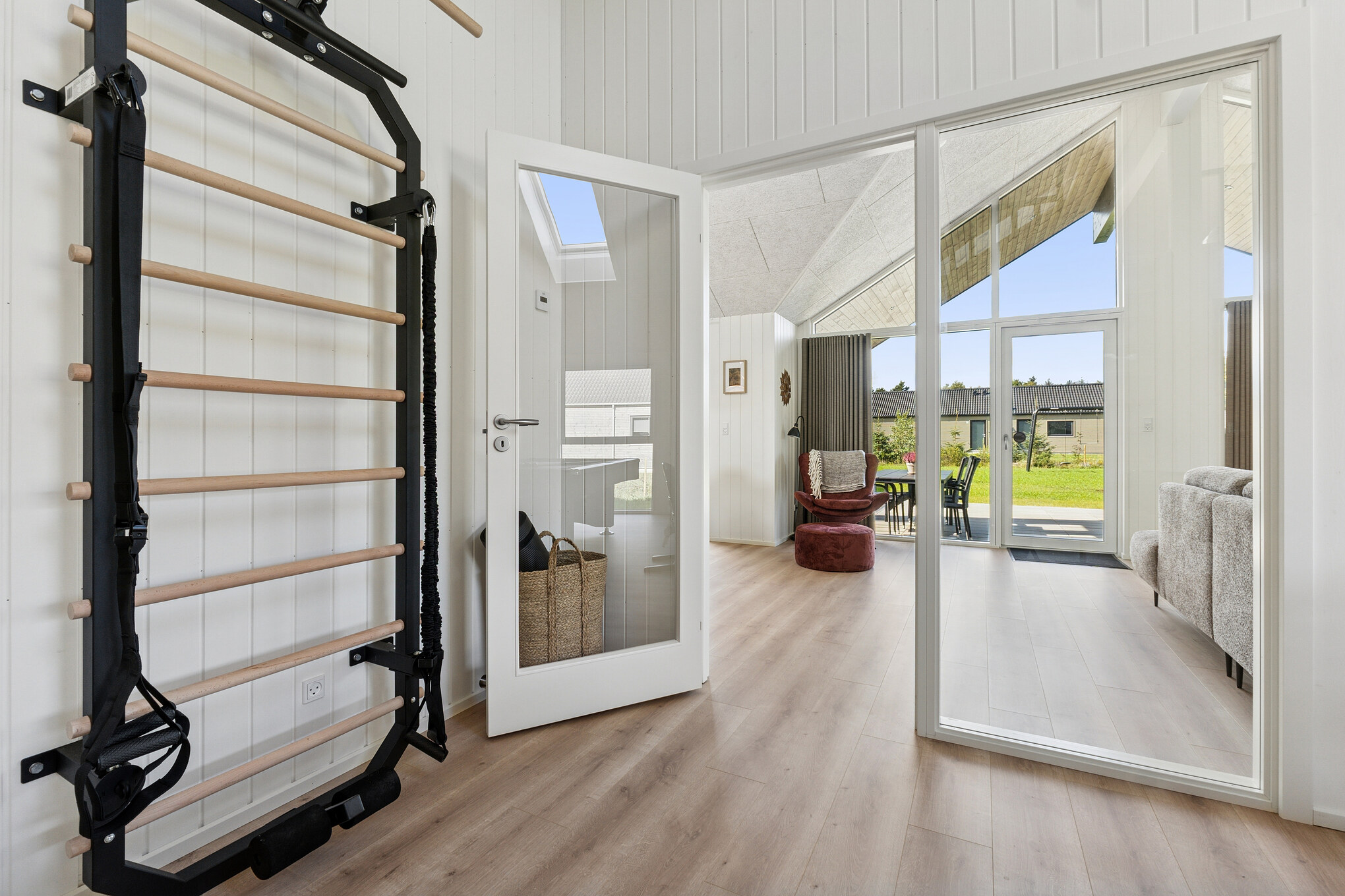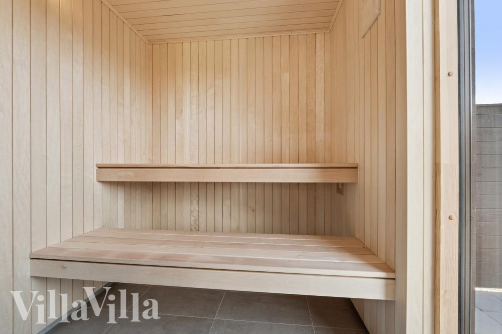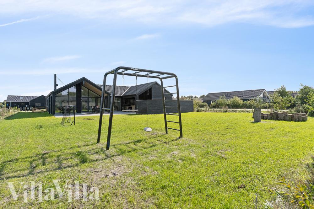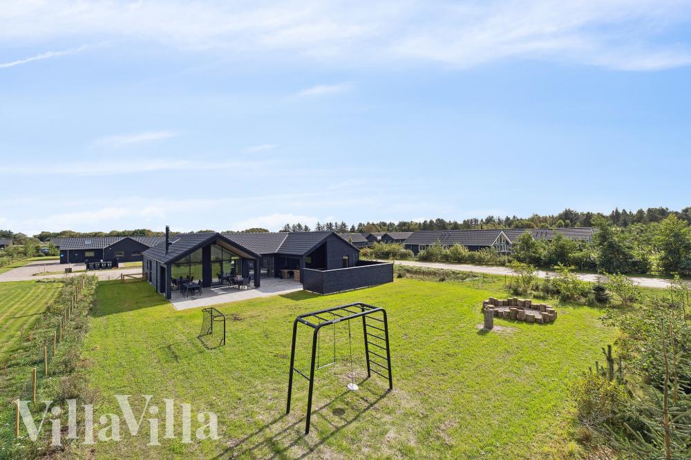 Draußen erwartet Sie Ihre eigene Oase auf der nach Südwesten ausgerichteten Terrasse mit Outdoor-Whirlpool und Sauna – ideal, um tagsüber die Sonne und nachts den Sternenhimmel zu genießen. Um den langen Esstisch kann sich die ganze Gruppe versammeln, während in der überdachten Außenküche mit Gasgrill köstliche Mahlzeiten zubereitet werden. Gleich nebenan, unter dem Vordach, sorgt die gemütliche Bar mit Barhockern für eine entspannte Atmosphäre, in der man kühle Getränke genießen kann, während die Kinder fröhlich im Garten spielen, sich auf dem kombinierten Kletter- und Schaukelgerüst austoben. Der Garten ist eingezäunt, sodass kleine Kinder und Hunde sich frei bewegen können. Im Garten gibt es zudem eine Feuerstelle mit Sitzgelegenheiten – ideal zum Stockbrot backen, zum Geschichten erzählen und für gemütliche Abende unter dem Sternenhimmel. Das Ferienhaus verfügt über eine Ladestation, an der Sie Ihr Elektroauto während Ihres Aufenthalts problemlos aufladen können.